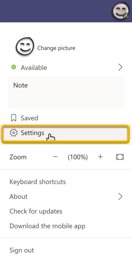 Click on your profile picture within the Teams application. From the dropdown, choose Settings.