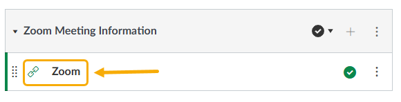 - Go to the Zoom Link module and press the plus sign + to add content to the module.