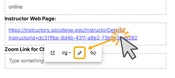 Navigate to the Instructor Contact Information section and select the pencil button to edit.