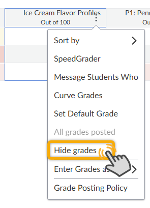 Note: Hiding a column only affects visibility for students. Instructors always see all grades in the Gradebook.