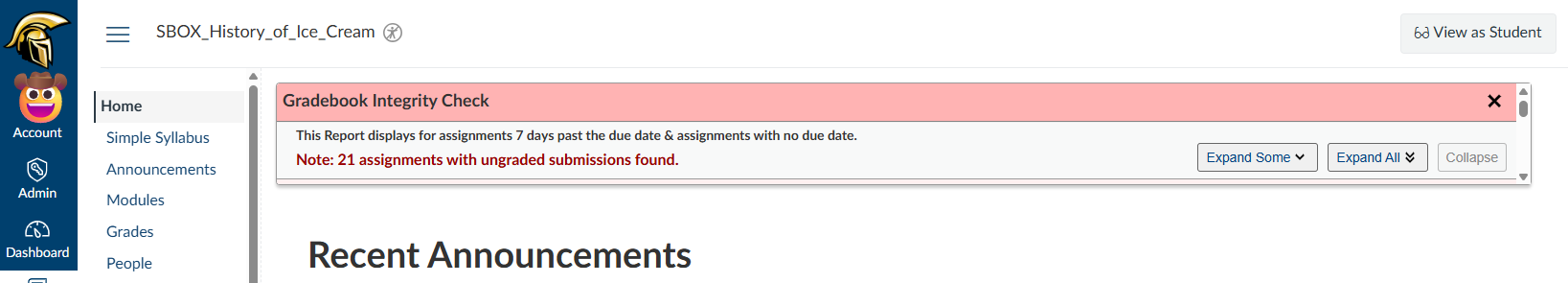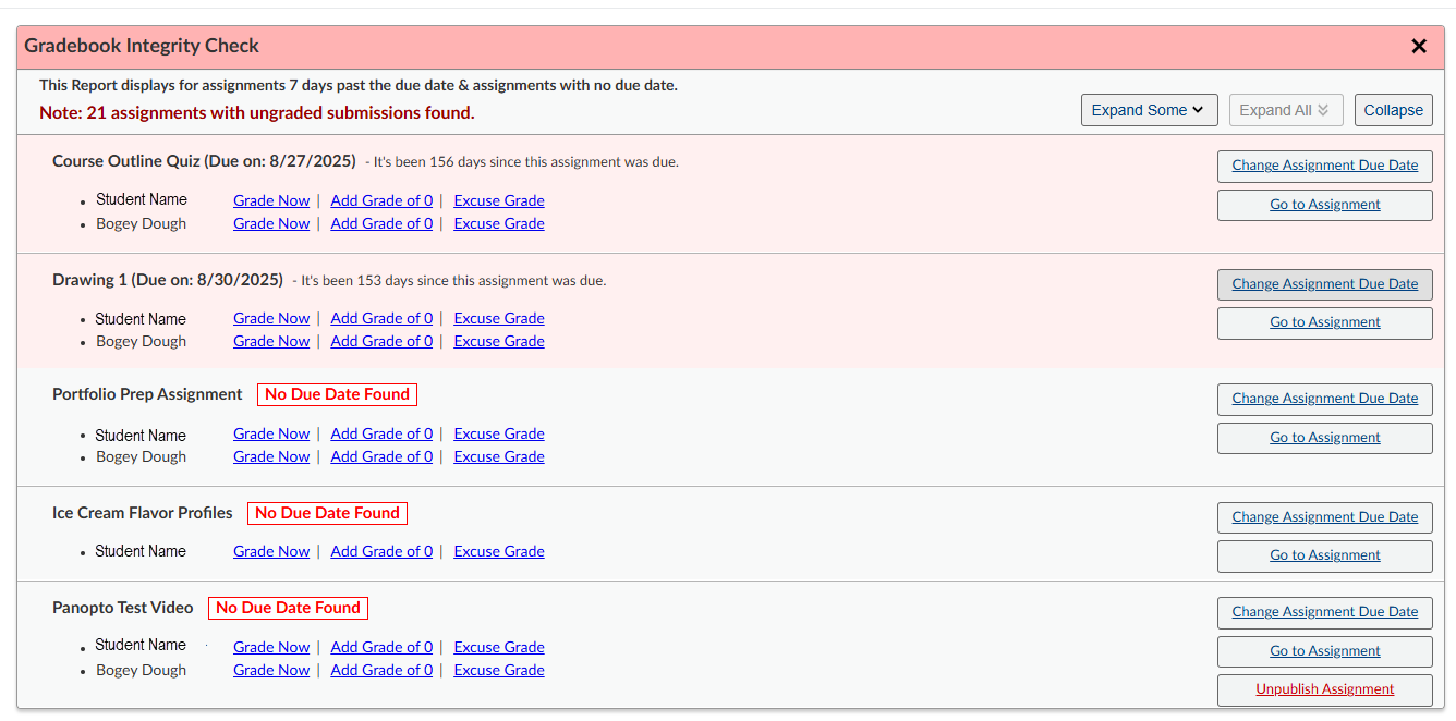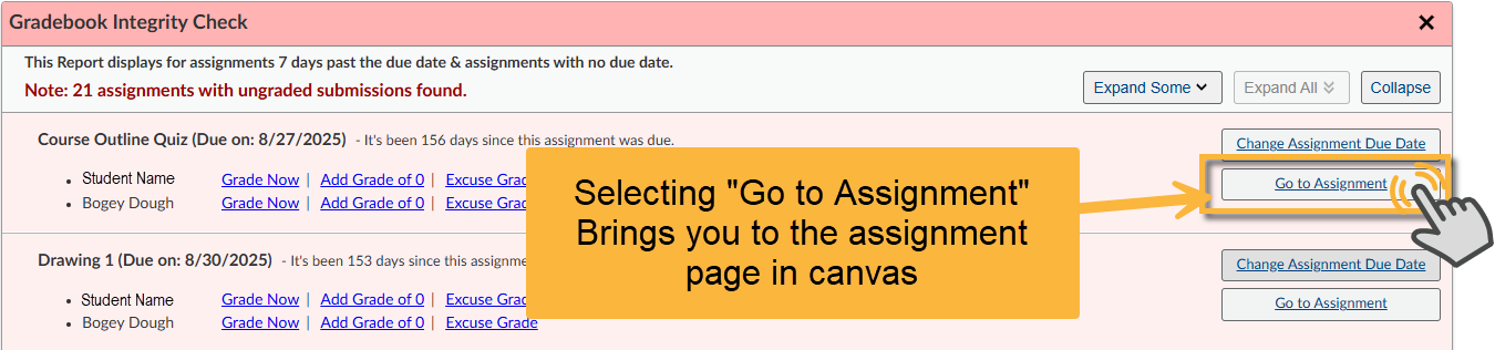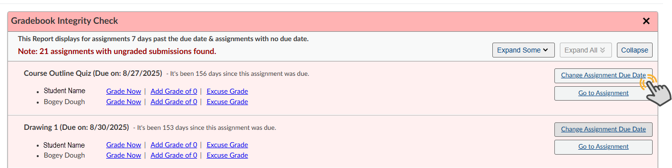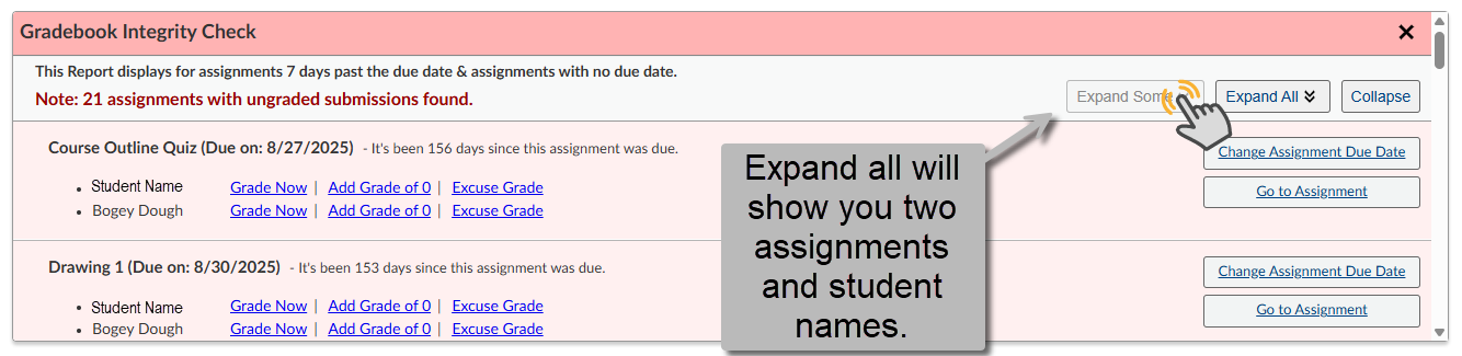 - Select Expand Some to see a few of the assignments and Student names.