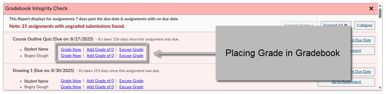 Note: The Gradebook Integrity Check will populate one week from the due date specified in the assignment.