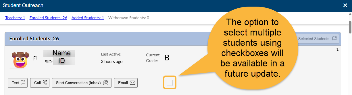 Note: The option to select multiple students using checkboxes will be available in a future update.