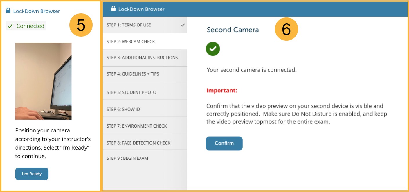 Respondus displays your instructor instructions for second camera positioning.